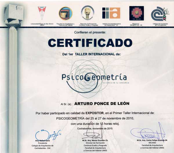 Contacto Psic. Ninón Fregoso, Ing. Arturo Ponce de León, Arq. Jenniffer Hassey Email: info@psicogeometria.com Tel. +52 (55) 5652-3968 y +52 (55) 5251-8818. Cel. +52 (155) 2242-3763 o desde México con el prefijo 044 2242-3763