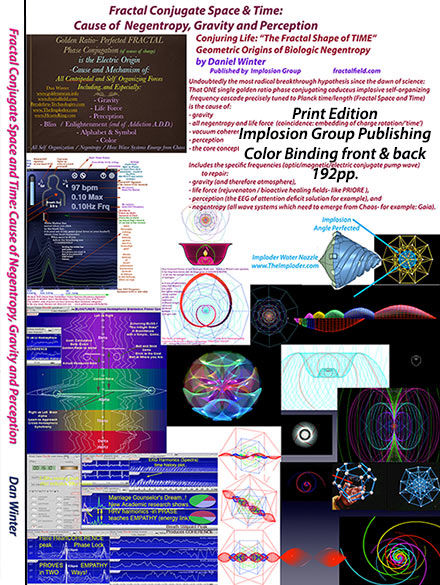 Dan Winter’s new book presents the most compelling and systematic scientific evidence to date – that fractality in space and time is the specific mechanism and cause of gravity, biologic negentropy, life force, perception, and human bliss. Although several hugely famous authors have already presented their books on fractality in time- by comparison – this book shows they were functionally clueless about the physics. Winter quotes many scientists who have already speculated that fractality is the cause of gravity- BUT Winter is the first to very specifically define the frequency, geometry, and wave mechanic optimization of that gravity causing fractality.