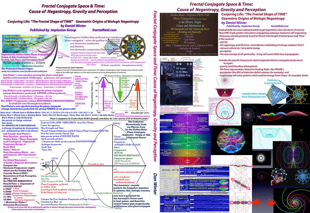 Everyone agrees that fractality is infinite compression. Fractal mathematics teaches the mathematics of infinite compression but until Winter- no one knew what a fractal FIELD was. Golden Ratio is unquestionably self-similarity optimized- as precisely is fractality. Einstein argued that gravity was infinite charge compression- but never learned what a fractal was. Winter now presents overwhelming evidence that golden ratio phase conjugation IS fractality incarnate in all wave mechanics. IF Winter is right with his exact frequency signatures for fractality in space and time- he clearly presents how to repair all wave systems to emerge from chaos- fixing environments for peak perception, amplifying the Schumann phase conjugate pump wave so Gaia climate emerges from chaos- are just the beginning. Fractality in time is now quantized and predictable- you can set your calendar. Synchronicity is nothing more than the charge coupling produced by conjugate embedding – in the (fractal) charge rotation intervals- called time. How to emerge from chaos- starts with knowing why objects fall to the ground- now for the first time both questions are answered- in pure fractal highly accurate wave mechanics: HOW negentropy originates!