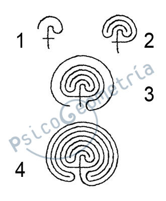 1. hacemos una cruz y el trazo hacia arriba girando hacia la derecha (labe- rinto implosivo)